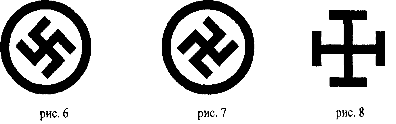 Даже в древнейших еврейских синагогах присутствует Свастика, например, в синагоге Айн Жеди в Израиле. Там Свастика закручена влево. ПРАВОСТОРОННЯЯ СВАСТИКА – СИМВОЛ ЖИЗНИ И СОЗИДАНИЯ (рис. 7). Правосторонних Свастик у евреев нет. Им больше нравится не создавать, а пожинать плоды, особенно чужие. Да и вообще евреи – это всегда политически левые, левота. Суммарная Свастика показана на рис. 8. После февральской революции Временное правительство пыталось освоить Свастику и печатало её на деньгах, которые были в ходу до 1918 г. пока её коммунисты с денег не сняли. На 250-рублёвой купюре – одна Свастика в центре купюры. На 1000, 5000 и 10000-рублёвых купюрах – по три Свастики: одна – в центре и две – по краям. Таким образом на русских деньгах (и до советской власти и после) напечатана Свастика. Точно такая же, левая, один к одному как у Гитлера. Только Гитлер в это время был еще никто и ничто. А Свастика была в России. И была не на заборе нарисована, а ни много, ни мало на государственных денежных знаках. Наличие Свастики на русских денежных знаках говорит об одном принципиальном факте: Свастика была государственным символом России! Это фактическое положение нашей русской истории, которую надо уважать или хотя бы знать вне зависимости от того, нравится этот факт или нет. Первый год своей власти коммунистам было не до денег, и они пользовались деньгами временного правительства. Позже коммунисты Свастику с денег, естественно, сняли. Принципиально разные эгрегоры у коммунистов и язычников. Свастика на Руси была широко распространена во все времена. Она присутствовала во всех праздничных нарядах, рушниках, полотенцах. Свастики много в Эрмитаже С. Петербурга, ею расписаны паркеты, узоры, вазы. Евреи и коммунисты много сил тратят на борьбу со Свастикой, стремятся её запретить всеми правдами и неправдами. Якобы Свастика – это пропаганда Гитлеровского фашизма. Конечно, этот аргумент лжив от начала до конца. Гитлер пришёл к власти в 1933 г., а Свастика на русских деньгах появилась в 1917 г., а Эрмитаж расписан Свастикой в XVII веке. Есть множество и других примеров присутствия Свастики на Руси в самые разные времена, но они не так легко доступны. А вот Свастику на русских деньгах и в Эрмитаже увидеть очень легко. Во всеобщей декларации Прав человека, утверждённой ООН, в статье 19 записано: “Каждый человек имеет право на свободу убеждений и на свободное выражение их; это право включает свободу беспрепятственно придерживаться своих убеждений и свободу искать, получать и распространять информацию и идеи любыми средствами и независимо от государственных границ”. Любые символы и знаки – это информация. В соответствии с нормами международного права мы имеем права распространять Свастику любыми средствами. А тех, кто пытается нам это запретить следует считать преступниками. Из этой 19 статьи следует так же, что человек имеет право на любые убеждения (в том числе и на антисемитские) и на их беспрепятственное распространение. Таким образом, борцы против антисемитизма и все те, кто придумал 282 статью Уголовного Кодекса России, грубо попирают нормы международного права и Права человека. Почему же молчат наши рьяные защитники Прав человека? Потому, что большинство так называемых защитников Прав человека - это управляемые марионетки, которые поднимают вой только тогда, когда и